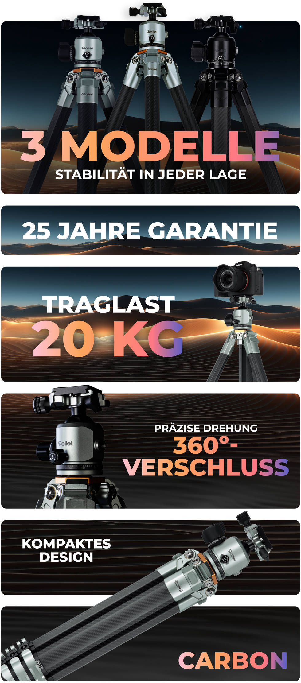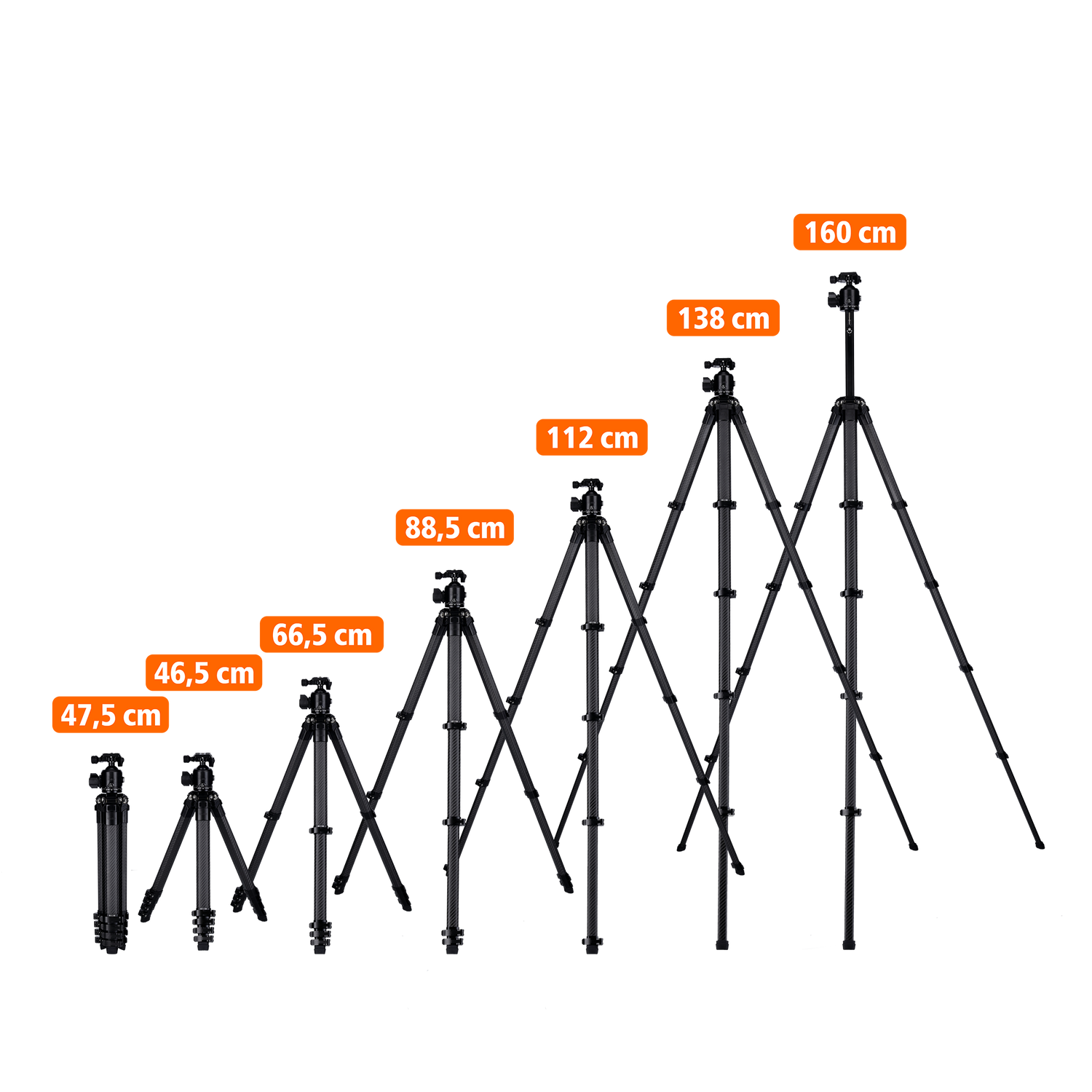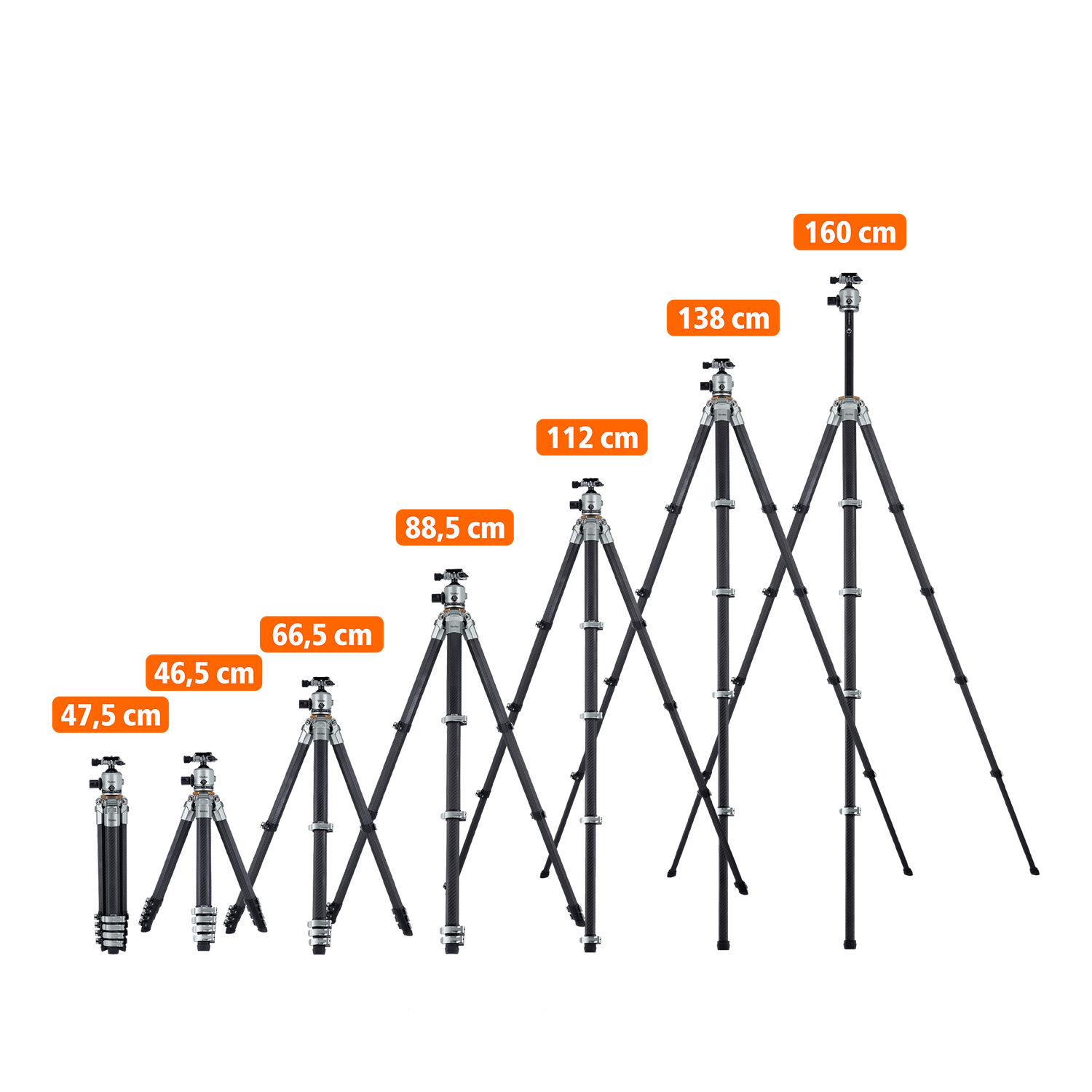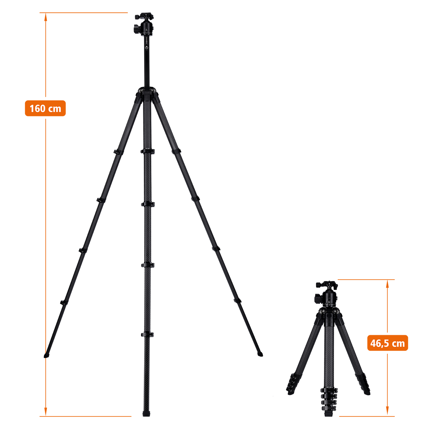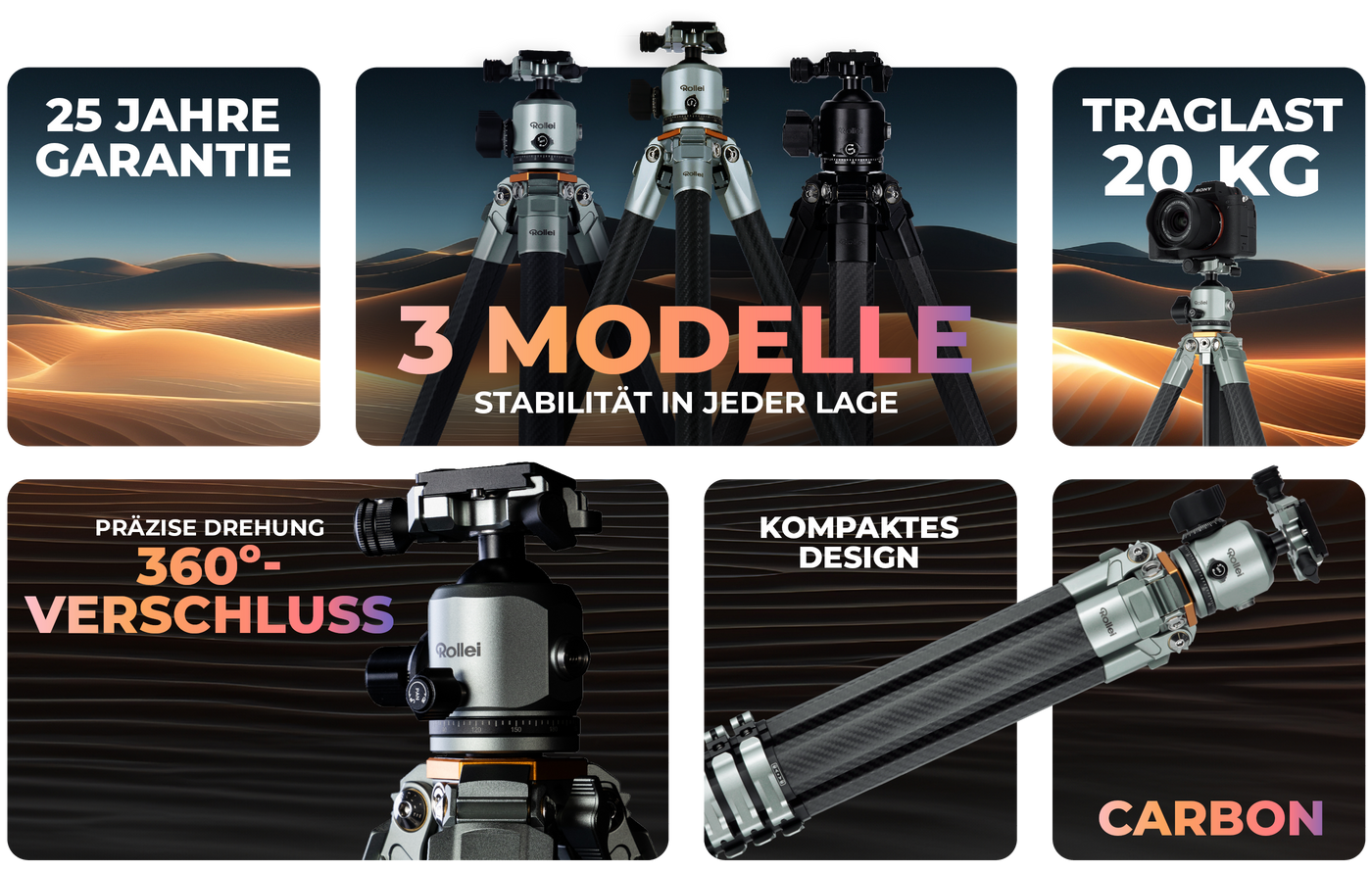 Das Carbon-Stativ bietet ultimative 20 kg Tragkraft und erreicht eine Arbeitshöhe von 137 cm. Mit einem Gewicht von nur 1,86 kg ist es äußerst transportfreundlich und lässt sich auf kompakte 50 cm zusammenklappen. Die einzigartigen Octagon-Stativbeine sorgen für einen besonders stabilen Stand.