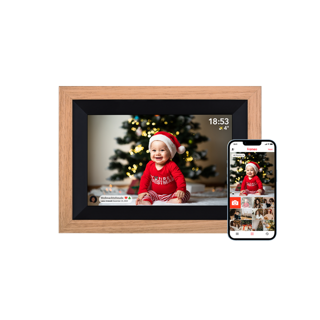 Der Rahmen kam als Weihnachtsgeschenk gut an. Die Einrichtung mit der App war recht einfach, das Hochladen der Fotos funktioniert über die App gut. Der Holzrahmen fügt sich elegant in die Umgebung ein.
